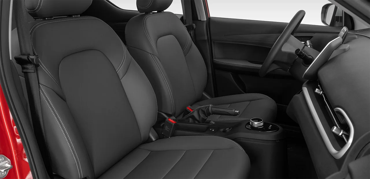 VinFast Herio Green có thiết kế nội thất hài hòa, sang trọng, được trang bị đầy đủ tiện nghi. Thuộc phân khúc A nhưng VF5 có chiều dài cơ sở lên đến 2514 mm, giúp khoang nội thất rộng rãi hơn nhiều mẫu xe trong cùng phân khúc. Xe được thiết kế 5 chỗ ngồi, ghế được bọc giả da, mang đến không gian rộng rãi và thoáng đãng cho hành khách trên xe.