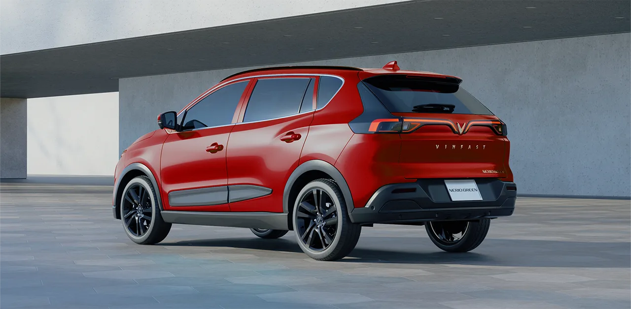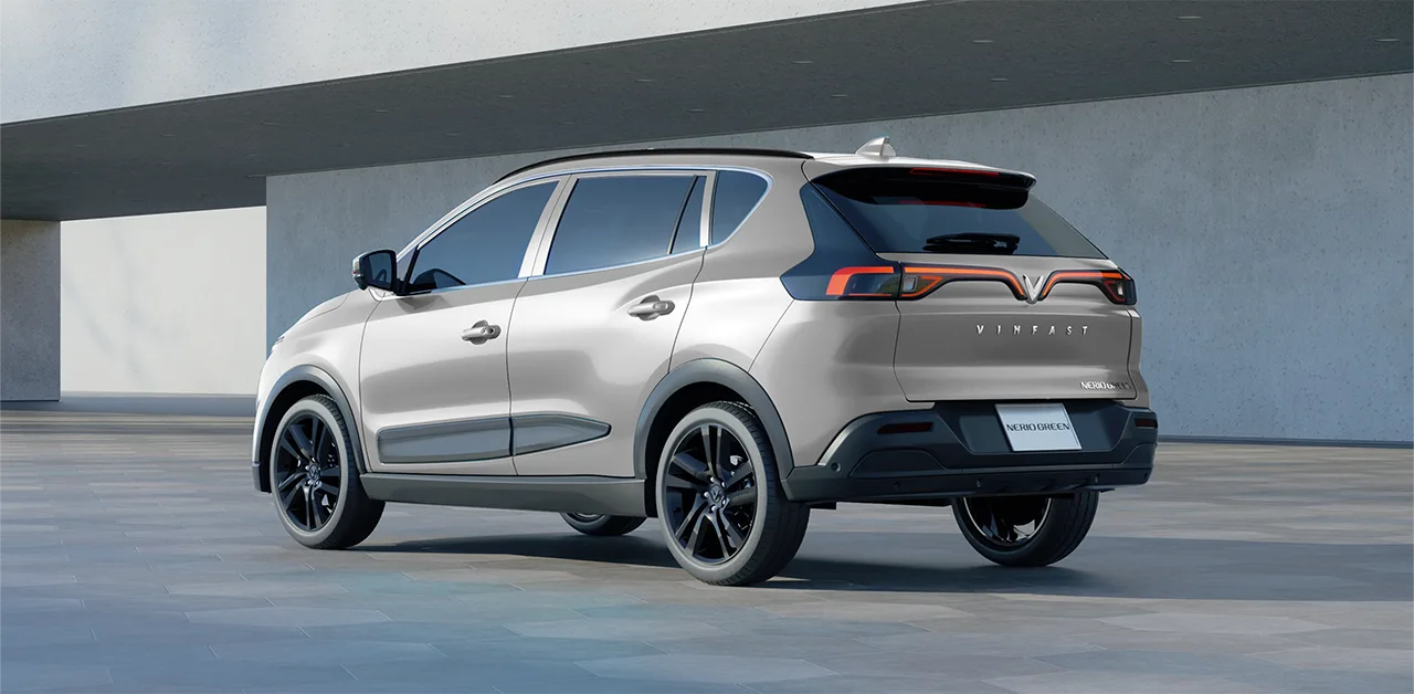 Phần đầu xe thiết kế mang nét đặc trưng của hãng với logo chữ V ở chính giữa, tạo hình cánh chim theo dải led mở rộng sang hai bên. Đuôi xe cũng tương tự với phần Logo chữ V chính giữa, với dải led mở rộng sang hai bên tới cụm đèn hậu, ở phiên bản Nerio Green, VinFast đã cách điệu phần đèn xe dạng chữ “L” mở rộng lên trên nóc xe. do đó khi nhìn ngang xe cũng có thể thấy được một phần chi tiết của cụm đèn, tạo cảm giác liền mạch từ thân xe tới đuôi xe. Ngoại thất xe được trang bị thêm phần ốp bo viền màu đen nhám và thanh giá nóc crôm giúp tạo cảm giá cứng cáp hơn cho xe.