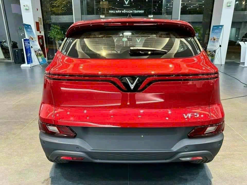 Phía đuôi xe được thiết kế đơn giản nhưng không kém phần ấn tượng với dải đèn nhận diện thương hiệu cùng cụm đèn xi nhan, đèn lùi và đèn sau màu đỏ được đặt thấp phía dưới. Phần cánh gió đuôi xe và ăng ten vây cá mập được sơn cùng màu với nóc xe. Cản sau được thiết kế hầm hố, càng làm tăng thêm vẻ ngoài mạnh mẽ, khỏe khoắn cho VF5 Plus.
