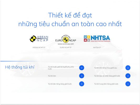 Thiếu kế dự kiến để đạt tiêu chuẩn an toàn cao nhất | ASEAN NCAP 5* EURO NCAP 5* NHTSA 5* |